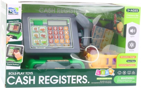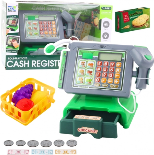 Divertente e educativa cassa giocattolo con accessori per un gioco del negozio realistico. Include effetti luminosi e sonori, scanner, microfono e tastiera numerica. Il set comprende banconote e monete, cestino della spesa e alimenti per un’esperienza ancora più autentica.