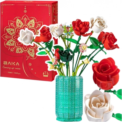 L’elegante set di costruzione “rose in vaso” unisce divertimento creativo e decorazione d’interni di stile. Con 1022 pezzi assemblerai un bouquet realistico con rose rosse, bianche e rosa in un vaso decorativo. Il modello finito alto 43 cm è resistente, non appassisce e abbellisce mensole, tavoli e angoli di lavoro. Un regalo perfetto per bambini dai 6 anni e per adulti appassionati di costruzioni.