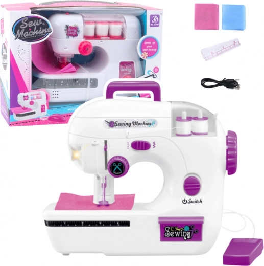 La macchina cuce davvero: il tessuto può essere fatto scorrere tramite pedale o volantino manuale. Sono disponibili illuminazione dell’area di lavoro, trasporto con sollevamento del piedino e suoni realistici che intensificano l’esperienza. L’ago è protetto da una copertura in plastica, rendendo il gioco più sicuro anche per i principianti.