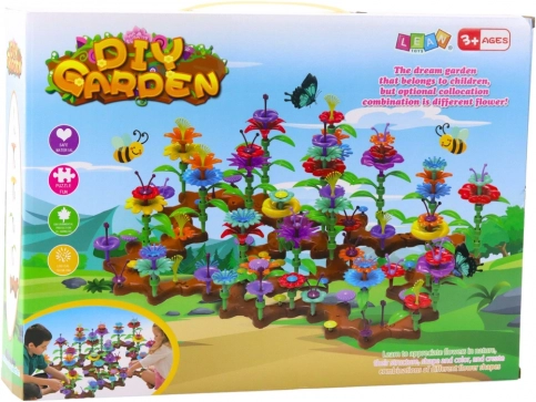 Set di costruzioni creativo Giardino di Fiori con 198 pezzi. Colori vivaci, facile incastro, sicuro per bambini dai 3 anni. Sviluppa creatività e motricità fine.