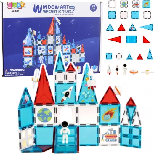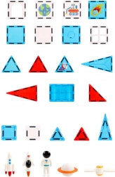 - 58 pezzi magnetici di varie forme e colori, mini-figura di astronauta, razzo, piastrelle decorative con motivi spaziali