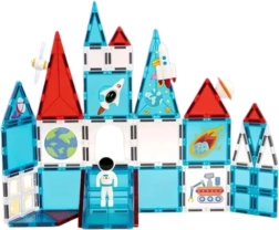 I magneti potenti assicurano un collegamento saldo dei pezzi, così le costruzioni mantengono bene la forma. Il set a tema spaziale include una mini-figura di astronauta, un razzo e piastrelle decorative che sviluppano l’immaginazione e sostengono in modo naturale il gioco creativo, la visione spaziale e le abilità manuali.