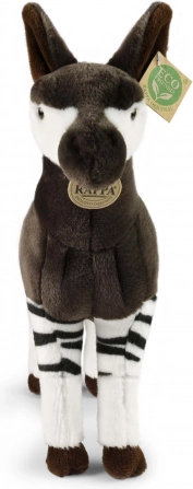 Questa splendida okapi di peluche si distingue per l'aspetto realistico e la lavorazione precisa, che la rendono un regalo perfetto e un pezzo da collezione. Il marchio RAPPA pone l'accento sulla sostenibilità e sulla riduzione della plastica, utilizzando imbottitura riciclata da bottiglie PET, completamente sicura e morbida al tatto.