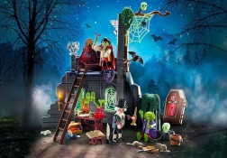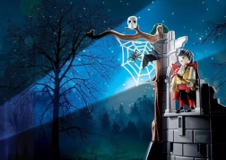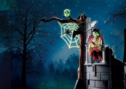 Il promo set PLAYMOBIL include rovine di castello accuratamente progettate, 3 figure, una cassa/tomba, diversi ragni, pipistrelli e altri elementi spettrali che aggiungono tensione e divertimento al gioco.