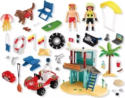 Vivi avventure estive con il set PLAYMOBIL sulla spiaggia! Torre di salvataggio, veloce buggy da spiaggia, coraggioso bagnino con cane e ricco set di accessori per missioni di soccorso piene d’azione. Ideale per i bambini che amano spiaggia, mare e storie avvincenti.