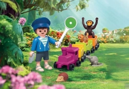 Parti per una allegra gita in trenino nel mondo di PLAYMOBIL Animals & Friends. Una locomotiva colorata con tetto rimovibile, vagoncini collegabili in qualsiasi ordine e adorabili animaletti come ghepardo, topolino, scimmietta e riccio promettono ore di gioco creativo e scene di ruolo con il piccolo capotreno.