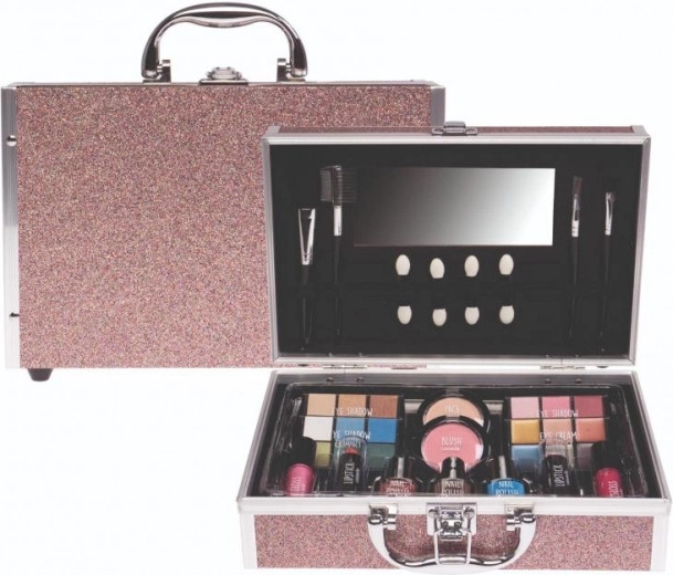 Scopri il pratico beauty case di misura media con una finitura brillante che colpisce a prima vista. Grazie alla suddivisione studiata, mantiene il tuo make‑up, i pennelli e gli accessori perfettamente in ordine, sia a casa che in viaggio.