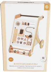 Il deambulatore è stabile e facile da manovrare, le ruote in gomma sono silenziose, antiscivolo e delicate sui pavimenti. La struttura solida garantisce lunga durata e un appoggio sicuro grazie alla maniglia ergonomica. Sette diverse attività favoriscono lo sviluppo naturale del bambino: