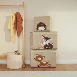 Il design adorabile con motivo di cerbiatti rende più accogliente ogni cameretta e allo stesso tempo offre uno spazio pratico per riporre gli oggetti. La scatola è stabile ma leggera, così bambini e genitori possono trasportarla con facilità. La struttura pieghevole fa risparmiare spazio e il coperchio con velcro mantiene il contenuto ben nascosto.
