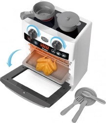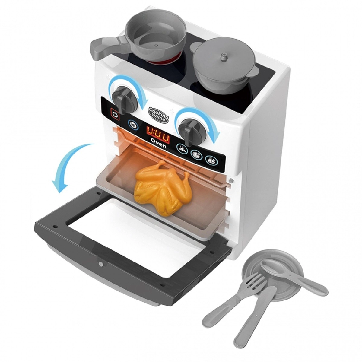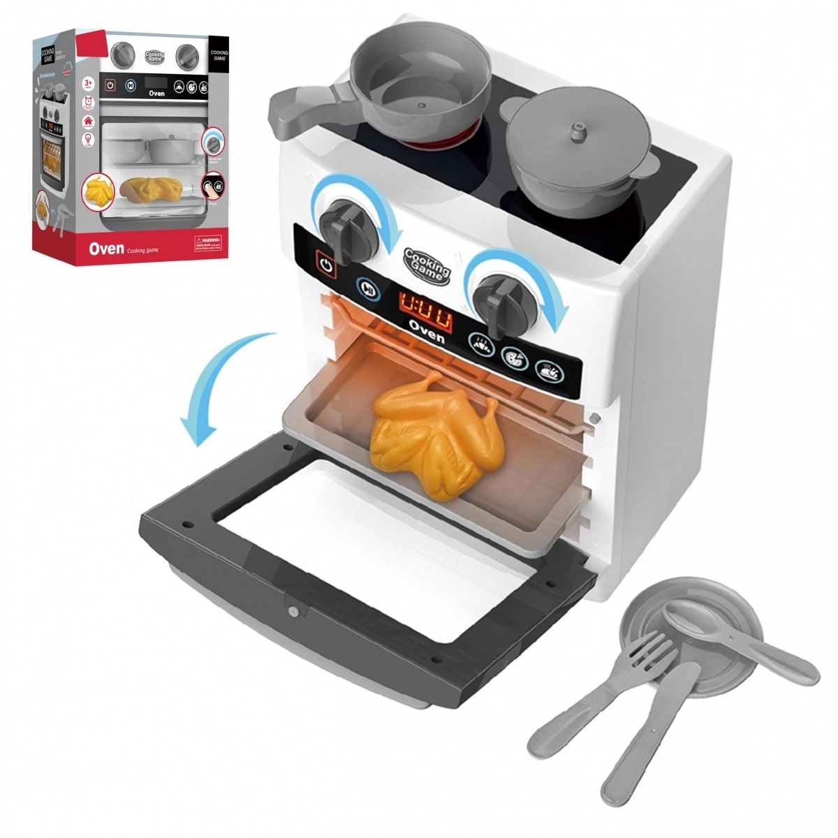 Scopri la divertente cucina giocattolo con forno che si illumina ed emette suoni realistici come veri elettrodomestici. Basta premere il pulsante ON, scegliere una delle tre modalità e il gioco può iniziare – il forno si accende e la cucina riproduce effetti sonori autentici. Due bruciatori e due manopole girevoli con clic amplificano la sensazione di una vera cottura. Inclusi ricchi accessori per creare “deliziose” pietanze.