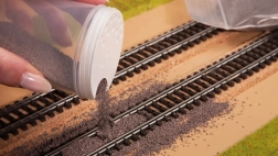 - Frazione fine 0,5–1,0 mm: ideale per H0 e TT, facile da distribuire e incollare.