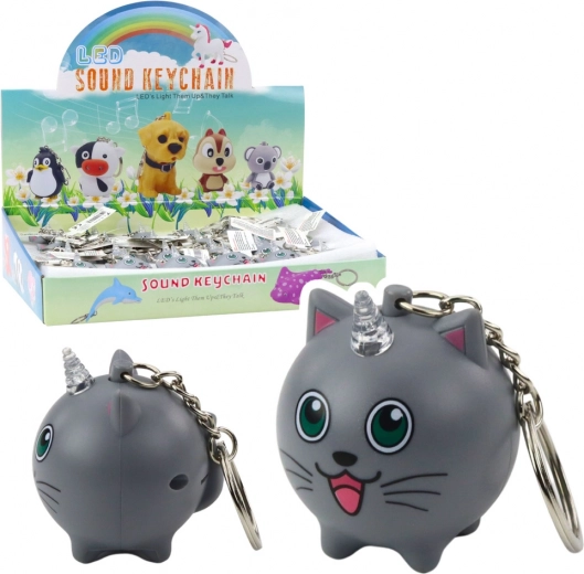 Ciondolo gattina unicorno con corno LED e suono, grigio