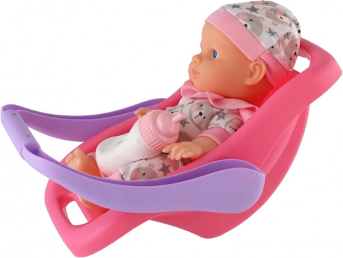Dolcissimo bebè con corpo in plastica rigida in un pratico seggiolino/ovetto che offre ore di fantastico gioco di ruolo. Grazie alla struttura resistente, alla presa facile e al biberon incluso, è ideale anche per i bambini più piccoli. Disponibile in 2 varianti di colore.