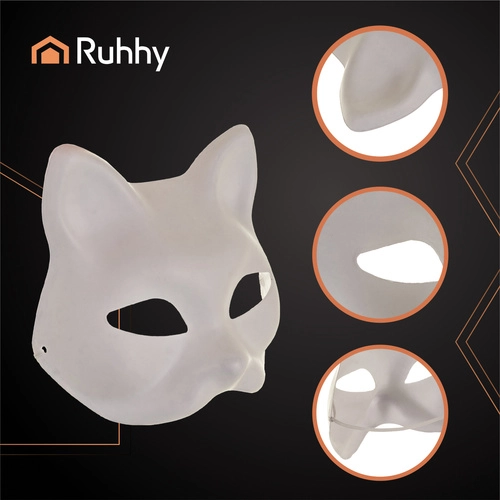 Maschere bianche a forma di gatto per decorazione personalizzata – pratico set da 10 pezzi del marchio RUHHY. Ideali per carnevale, Halloween, laboratori e eventi a tema. Grazie agli elastici sono comode da indossare, stabili sul viso e la loro superficie liscia è pronta per tecniche creative DIY.