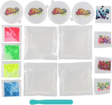 - Polvere speciale e ingredienti per la produzione di slime, decorazioni (a seconda del set)