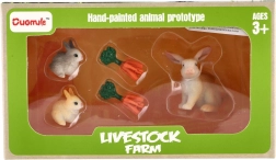 Questo set include 3 coniglietti di plastica in diversi colori e posizioni, completati da piccoli accessori per la cura e il gioco. I bambini possono creare le proprie storie, sviluppare la fantasia ed esercitare la motricità fine.