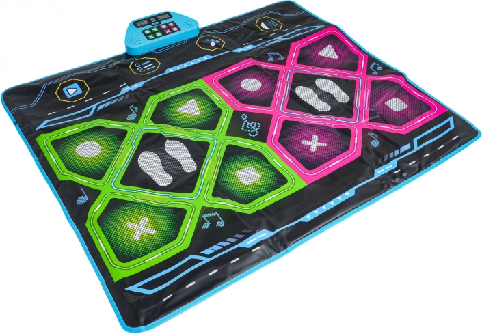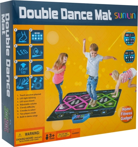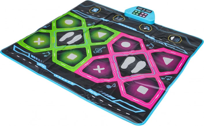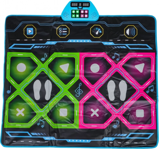 Il tappetino offre 8 basi musicali, 3 gradi di difficoltà, modalità per 1 o 2 giocatori e anche la modalità memoria. Nella modalità a due giocatori è possibile impostare schemi uguali o diversi per ciascuno. La parte inferiore è antiscivolo, così il tappetino rimane in posizione, e non manca la regolazione del volume. Alimentazione del display: 3× AA 1,5 V (non incluse).
