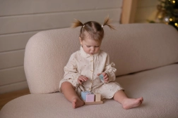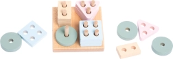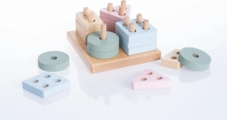 Il puzzle in legno CUBIKA Pastel smistamento forme IV è un supporto ideale per i primi apprendimenti. I bambini inseriscono 16 forme geometriche forate sulla base quadrata, esercitando in modo naturale il riconoscimento di forme e colori, la coordinazione occhio–mano e la pazienza. I colori pastello sono visivamente rilassanti e invogliano al gioco.