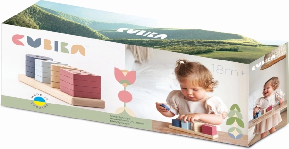 Il giocattolo è realizzato in legno di acero e faggio di alta qualità con lavorazione precisa. Per la colorazione vengono utilizzate vernici all’acqua inodori, completamente sicure per i bambini. I prodotti CUBIKA soddisfano i rigorosi standard EN 71 e dispongono del certificato tedesco TÜV.