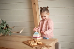 Scoprite il giocattolo in legno CUBIKA della collezione pastello: una piramide colorata con 9 pezzi che i bambini assemblano a forma di piramide egizia. L’attività allena la motricità fine, la coordinazione occhio–mano e allo stesso tempo sviluppa l’immaginazione.