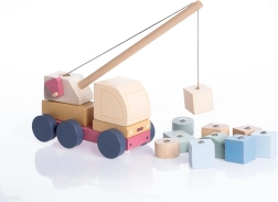 Questa elegante autogru CUBIKA in tonalità pastello è un eccellente puzzle in legno che insegna ai bambini coordinazione e pazienza in modo divertente. Il magnete sulla gru aggancia in modo affidabile le piastrine metalliche nei blocchi del carico, così i bambini possono sollevare e spostare in sicurezza i singoli pezzi. Grazie al legno robusto e alla lavorazione precisa, il giocattolo resiste anche a un uso intenso.