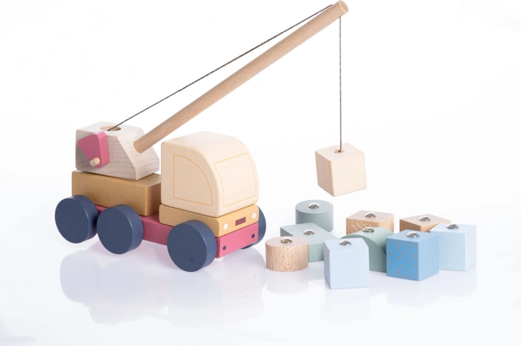 Scopri un giocattolo in legno di qualità dalla nuova collezione pastello CUBIKA: autogru con magnete e 14 pezzi colorati. I bambini possono sollevare e spostare il carico grazie al magnete, sviluppando motricità fine, pensiero logico e creatività. Realizzato in acero e faggio certificati, le vernici a base d’acqua sono sicure e inodori. Prodotto in Europa, conforme alla norma EN 71 e certificato TÜV.