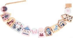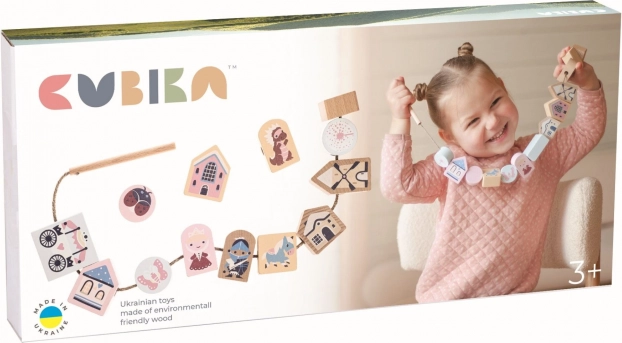 La fiaba da infilare CUBIKA Pastel è un set creativo per bambini che amano creare e scoprire. Grazie ai 12 pezzi in legno con motivi fiabeschi e alle 8 schede modello, i bambini allenano memoria, coordinazione occhio–mano e concentrazione. Il laccetto con astina in legno facilita l'infilatura e dona ai bambini la gioia della propria creazione.