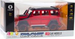 Il modello fuoristrada in metallo in scala 1:22 unisce materiali resistenti e un design realistico. La carrozzeria rossa, i dettagli curati e lo stile sportivo amplificano l’impressione di un vero off-road, perfetto sia in casa che in viaggio.
