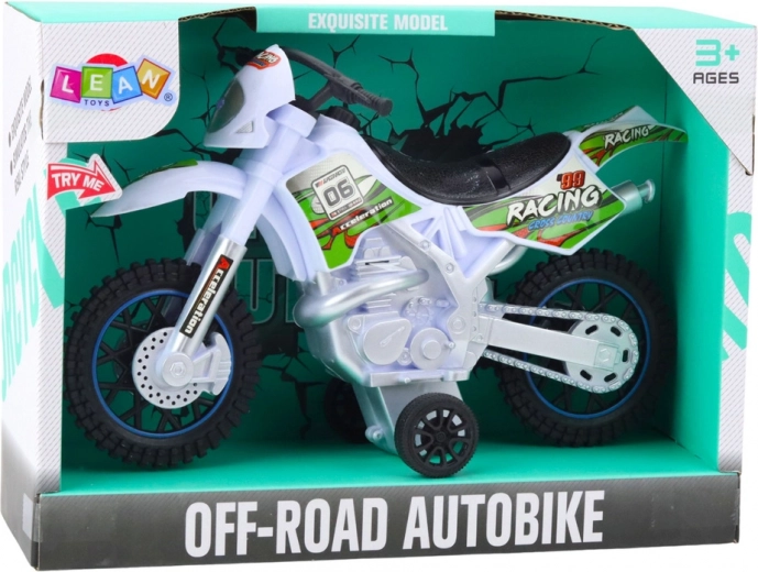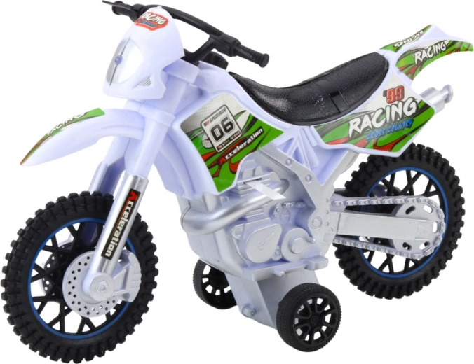 Questo giocattolo da motocross è la scelta ideale per i bambini che amano i veicoli da corsa e fuoristrada. Grazie al design realistico ispirato alle moto off-road e alla combinazione di colori bianco-verde, i bambini immagineranno facilmente le proprie avventure di gara.