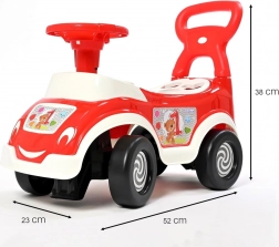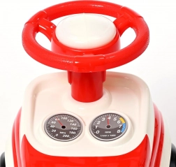 La struttura in plastica resistente e liscia con bordi arrotondati garantisce un gioco sicuro. La guida con volante con stampa del cruscotto avvicina i bambini al mondo della guida e il clacson aggiunge un elemento sonoro divertente. La macchinina non richiede batterie, è di facile manutenzione ed è adatta all’uso in interni ed esterni.