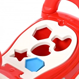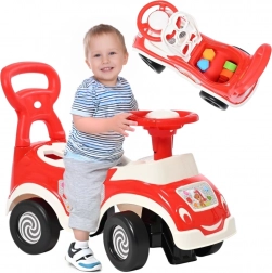Un solo giocattolo – quattro funzioni. Il bambino allena la camminata con supporto, si spinge con i piedini durante la guida e impara le forme grazie al sortitore integrato con blocchi colorati.