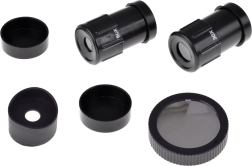 - Diagonale a specchio zenitale, filtro a membrana (per osservazione sicura del Sole), cercatore, supporto per telefono, vassoio porta-accessori, copri-oculare