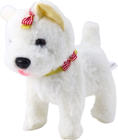 Cagnolino di peluche interattivo con guinzaglio e fiocchetti – bianco