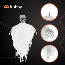 Crea una “haunted house” in pochi istanti. Questo scheletro bianco sospeso RUHHY si distingue per l'aspetto realistico e la costruzione leggera, così da poterlo appendere facilmente ovunque ti serva. Il tessuto strappato si muove al minimo refolo d'aria, conferendo alla decorazione un effetto gelido e vivido.