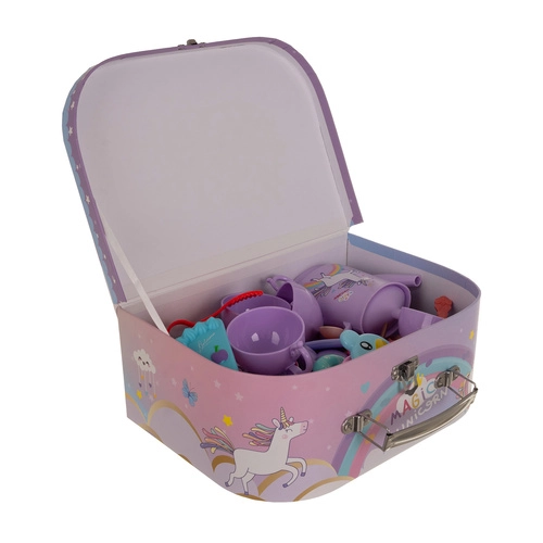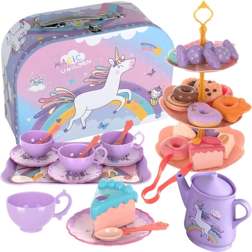 Adorabile set da tè per bambini in una pratica valigetta che farà felice ogni piccolo anfitrione. Include teiera, tazze, piattini, vassoio, alzata a tre piani per dolcetti e 21 leccornie. Grazie ai materiali di qualità è resistente a rotture e graffi, favorisce il gioco creativo e lo sviluppo delle abilità sociali e la sua superficie liscia è facile da pulire.