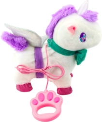 Dolcissimo unicorno di peluche interattivo che porta i bambini in un mondo di magia fiabesca. È morbido, piacevole al tatto e reagisce alle carezze: inizia a camminare, scodinzolare e emette suoni di nitrito e galoppo. Grazie al guinzaglio con pulsante di controllo il bambino può guidarlo facilmente; le ali scintillanti rimovibili e il fiocco colorato permettono di personalizzare il giocattolo. Un regalo perfetto che sviluppa immaginazione, creatività ed empatia.