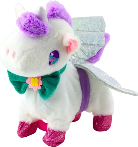 - unicorno di peluche interattivo, guinzaglio con pulsante di controllo, ali scintillanti rimovibili, fiocco rimovibile, confezione originale