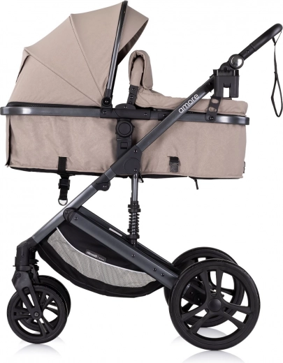 CHIPOLINO Amore 2in1 Tiramisu è un passeggino pratico che si adatta facilmente dalla nascita fino all’età prescolare. La seduta sportiva si trasforma in pochi istanti in una versione con navicella per neonati fino a 6 mesi. Il telaio classico con sospensioni integrate garantisce una guida fluida in città e sulle irregolarità.