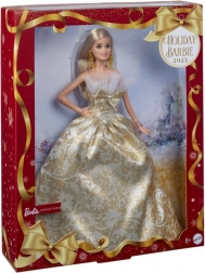 Entra nella magica atmosfera delle festività con la bambola Barbie in un ricco abito bianco e oro dal motivo floreale, dettagli in tulle e grande fiocco. Grazie alle braccia snodate, la bambola si posa facilmente, creando pose incantevoli per il gioco e per l'esposizione nella cameretta.