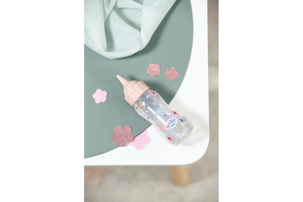 Leggero e dal design ergonomico, si adatta perfettamente alla mano dei bambini e, grazie al sicuro tappo a vite, è ideale per il gioco quotidiano. Il delicato design pastello con logo BABY born si abbina agli altri accessori e incoraggia il gioco di ruolo creativo da piccoli genitori.