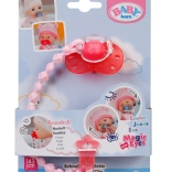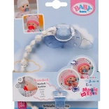 Il ciuccio è fissato a una clip/catenella che si aggancia facilmente ai vestiti della bambola. Così è sempre a portata di mano e non si perde durante il gioco.