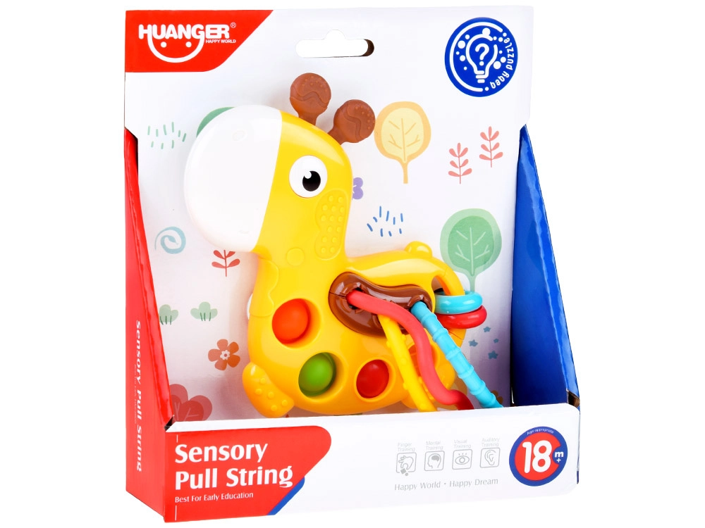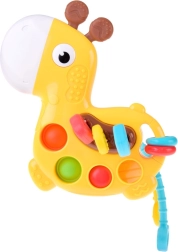 La simpatica mini giraffa è un giocattolo sensoriale e massaggiagengive in uno, pensato per i più piccoli. Combina texture diverse, bolle pop it ed elementi mobili per sviluppare la motricità fine, la coordinazione occhio–mano e offrire sollievo durante la dentizione.