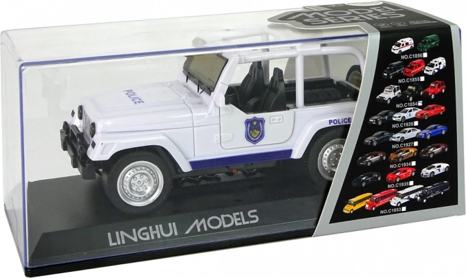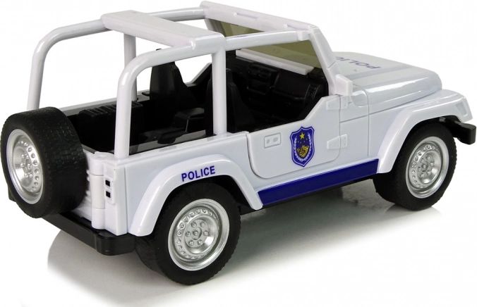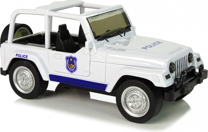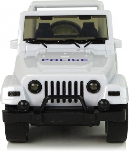 Diventa un difensore della legge e parti all’azione! Il fuoristrada della polizia bianco è la scelta perfetta per i bambini che amano l’azione e l’avventura. Le dimensioni compatte si adattano alla mano del bambino, mentre gli pneumatici in gomma e il motore pull-back garantiscono una corsa divertente su brevi distanze. L’auto ha porte anteriori apribili, interni dettagliati e elementi blu della polizia con scritta POLICE.