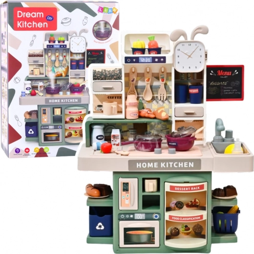 La cucina per bambini offre un’esperienza di cucina realistica grazie agli effetti di luce, suono e vapore. I bambini possono “cucinare”, “cuocere al forno” e “friggere”, riordinare il lavello e organizzare gli accessori sulle mensole. La lavorazione di qualità e sicura garantisce lunga durata e uso confortevole.