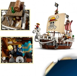 Entra nel mondo di ONE PIECE e costruisci l’iconica nave Going Merry. Il modello offre dettagli autentici – dalla polena a forma di pecora agli alberi e alle vele, fino al timone e all’ancora. All’interno trovi la cabina dell’equipaggio, la cucina, la stiva e l’officina con accessori, per vivere storie realistiche in mare.