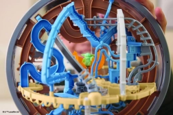 Ruotando e inclinando la sfera guidi la biglia attraverso rampe, loop e ponti – ideale per sviluppare concentrazione e coordinazione nei bambini da 8 anni.