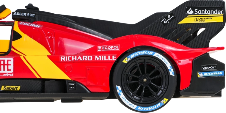 Diventa pilota di una supersportiva e domina la pista con il modello FERRARI 499P. Proporzioni fedeli, livrea da gara e caratteristici accenti gialli sottolineano l’aspetto autentico. Il telecomando in stile volante Ferrari assicura manovrabilità precisa in casa e all’aperto.