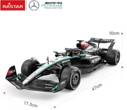 Autentico e veloce modello RC MERCEDES-AMG F1 W15 E PERFORMANCE in scala 1:12 del marchio RASTAR, apprezzato per la lavorazione dettagliata, lo sterzo preciso e la struttura resistente in plastica ABS. Grazie alla tecnologia 2,4 GHz offre un controllo fluido senza interferenze; le ruote in gomma e le sospensioni indipendenti garantiscono eccellente aderenza e stabilità.