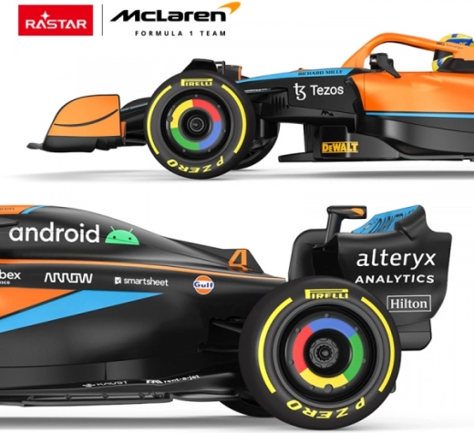 Il modello è una copia dettagliata della vera monoposto MCLAREN F1 MCL36 – incluse le proporzioni della carrozzeria e l'abitacolo accuratamente rifinito. Ruote in gomma, sospensioni indipendenti e regolazione della direzione di marcia garantiscono sicurezza su diverse superfici e un controllo semplice anche per i principianti.