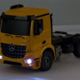 Questo camion RC dettagliato con licenza MERCEDES-BENZ è ideale per i piccoli appassionati di tecnologia. Il trattore e il semirimorchio sono dotati di ruote in gomma, si accendono luci anteriori e posteriori e durante la retromarcia si attivano luci di retromarcia e segnale acustico. Il realistico suono del motore è attivo per tutta la guida e amplifica l’esperienza.